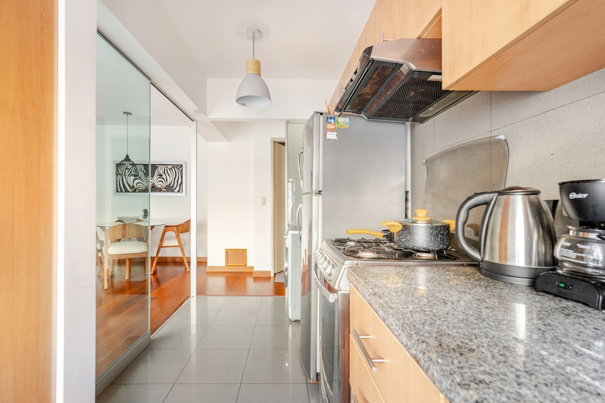 Apartment in Central Miraflores Room with queen bed, 50 inches Smart TV, private washing machine and Dryer , sofa bed, well-lit, in the heart of Miraflores, one block from Kennedy Park. Fourth floor in a residential area with excellent transport links, perfect for long stays, tourism, or business trips. Private bathroom Wi-Fi and Smart TV Kitchen equipped with dining table for 4 people Guest assistance and guidance.