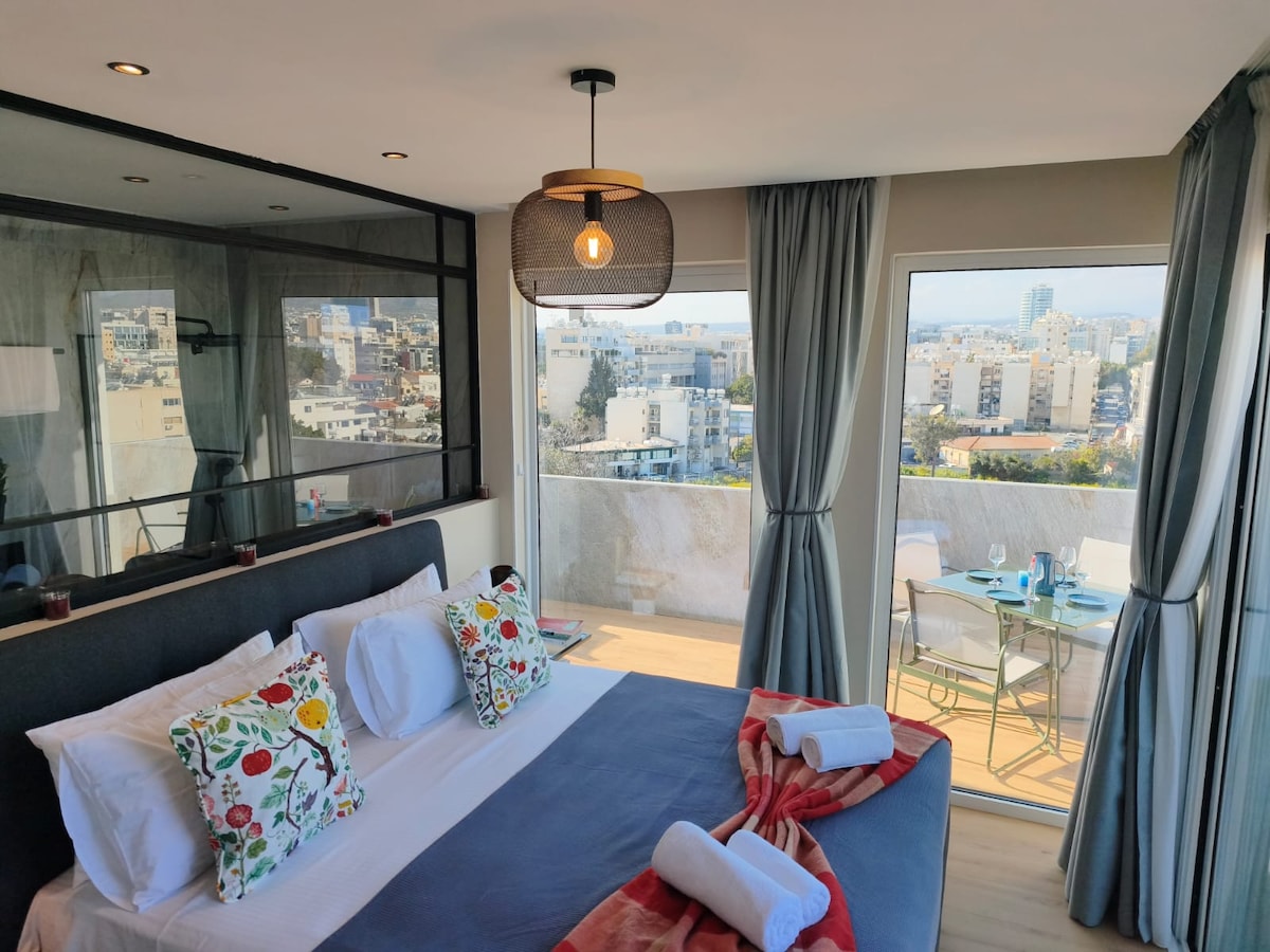 Modern stúdiószoba erkélyjel és queen méretű ággyal – Germa