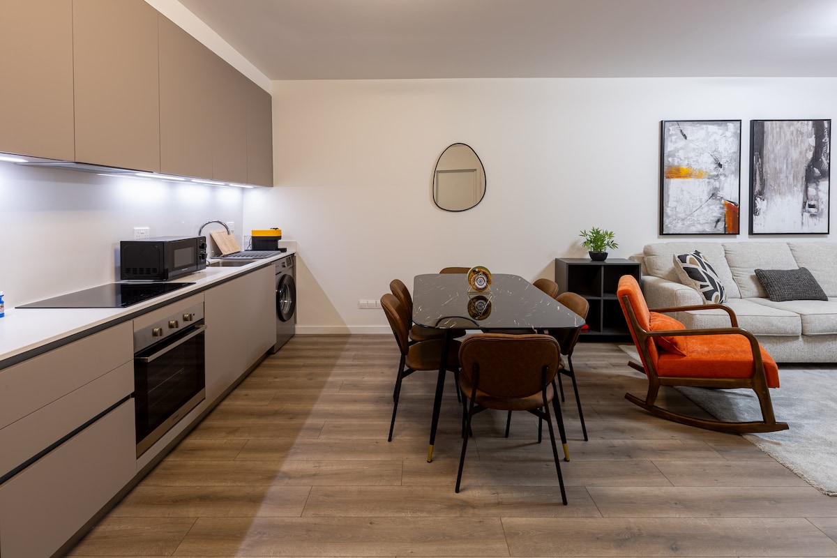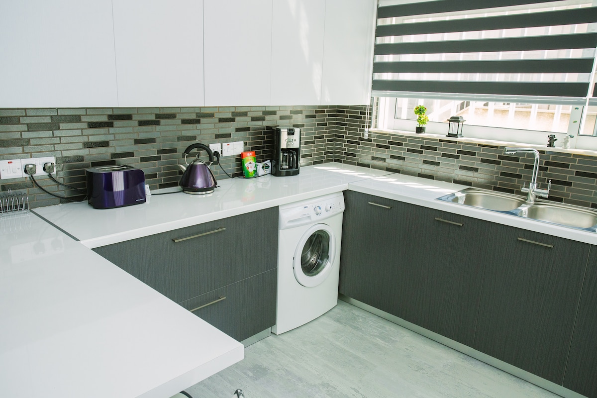 Menekülj ebbe a hangulatos, 1 hálószobás lakásba a limassoli Sunset Gardens, Tserkezoi negyedében, amely tökéletes párok vagy egyedül utazók számára. Élvezd a modern, nyitott terű szállást, amely teljesen felszerelt konyhával, saját erkéllyel és közös grillezővel, légkondicionálóval, Wi-Fi-vel és közös ingyenes szolgáltatásokkal rendelkezik, például medencével, közeli edzőteremmel és parkolóval. Pihenj az 55 hüvelykes okostévé, a külön munkaterület, a Nespresso kávéfőző, a kenyérpirító és a többi kényelmi szolgáltatás mellett. Csak 5 percre a Lady's Mile Beach-től, 10 percre a Limassol Marina-tól.