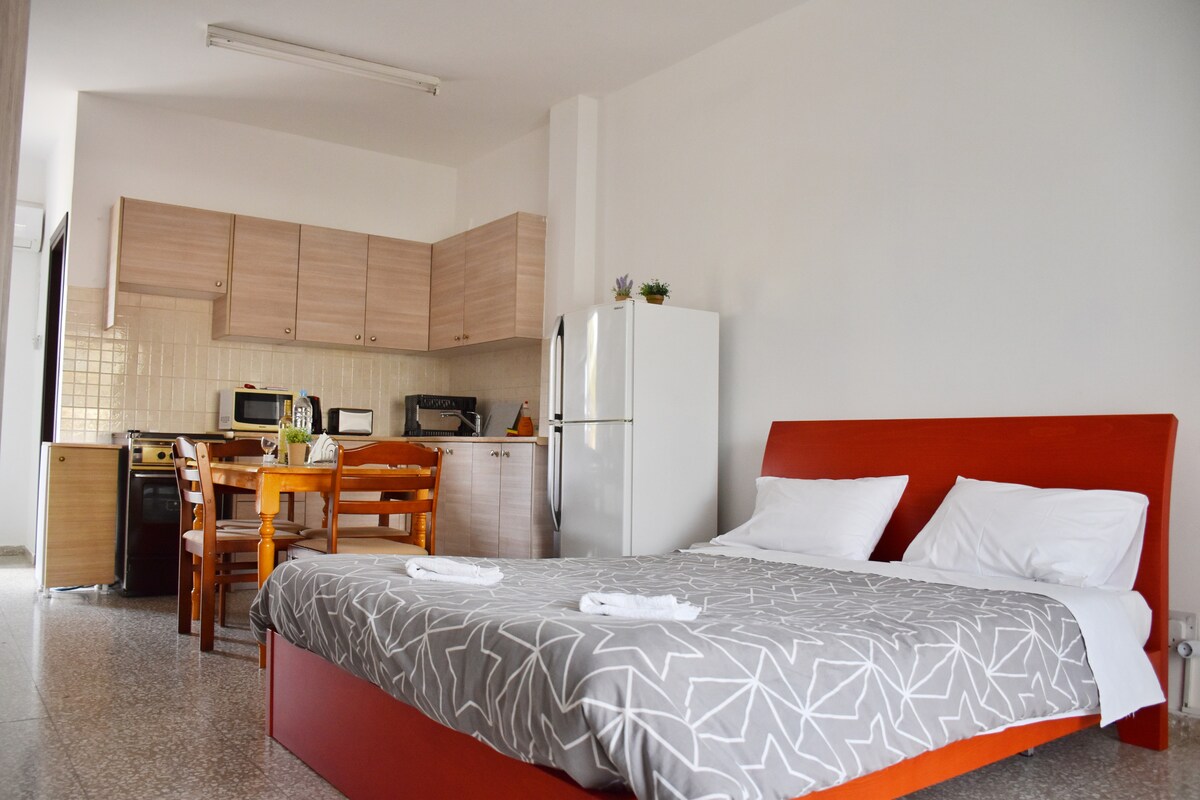 The studio It has all the latest amenities, big, comfortable and has beautiful style.The kitchen has everything you need like hobs, mini oven, cookery essentials. It's very close to many hotels in Kato Paphos and to many archeological museums. Private parking is just outside of entrance door. Huge supermarket is opposite from the apartment.3 minutes walking to the sea and 8 minutes walk to the old harbor and old castle!
