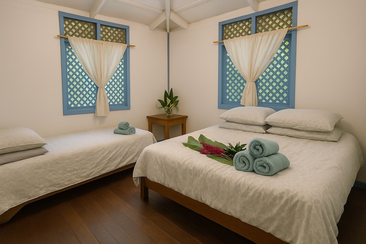 Szállj meg a Casa Colibríben, és szeress bele a Punta Cocles által kínált karibi légkörbe, amely számos látnivalóval rendelkező turisztikai célpont a dél-karibi térség egyik legegzotikusabb strandján. Ez a bájos és autentikus karibi családi ház 50 méterre található egy gyönyörű, természetes medencékkel rendelkező strandtól, számos közös területtel, három hálószobával, saját fürdőszobával, tágas nappalival, étkezővel és teljesen felszerelt konyhával. Mindössze 5 km-re található Puerto Viejo központjától.