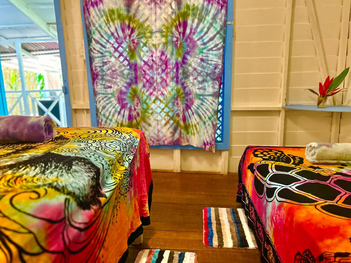☀️Karibi tengerparti házikók a főúton 🏝️70 méteres sétára a Punta Uva strandtól 🐊 élénk természet a helyszínen A 3. számú Casita szabadtéri konyhával rendelkezik és étkezőhelyiség a saját erkélyeden 2 hálószoba és fürdőszoba 3 ágy, 5 férőhely Tökéletes elhelyezkedés Pihenés a tengerparton Kalandok nemzeti parkokban Könnyű hozzáférés Útban Panamába Parkolás és mosás A nyaralásod autentikus Costa Rica-i karibi ÉLMÉNNYÉ válik, ha egy kulturális szabadtéri casitában szállsz meg, amely összekapcsol benneteket egymással, a kis közösségünkkel és a természettel
