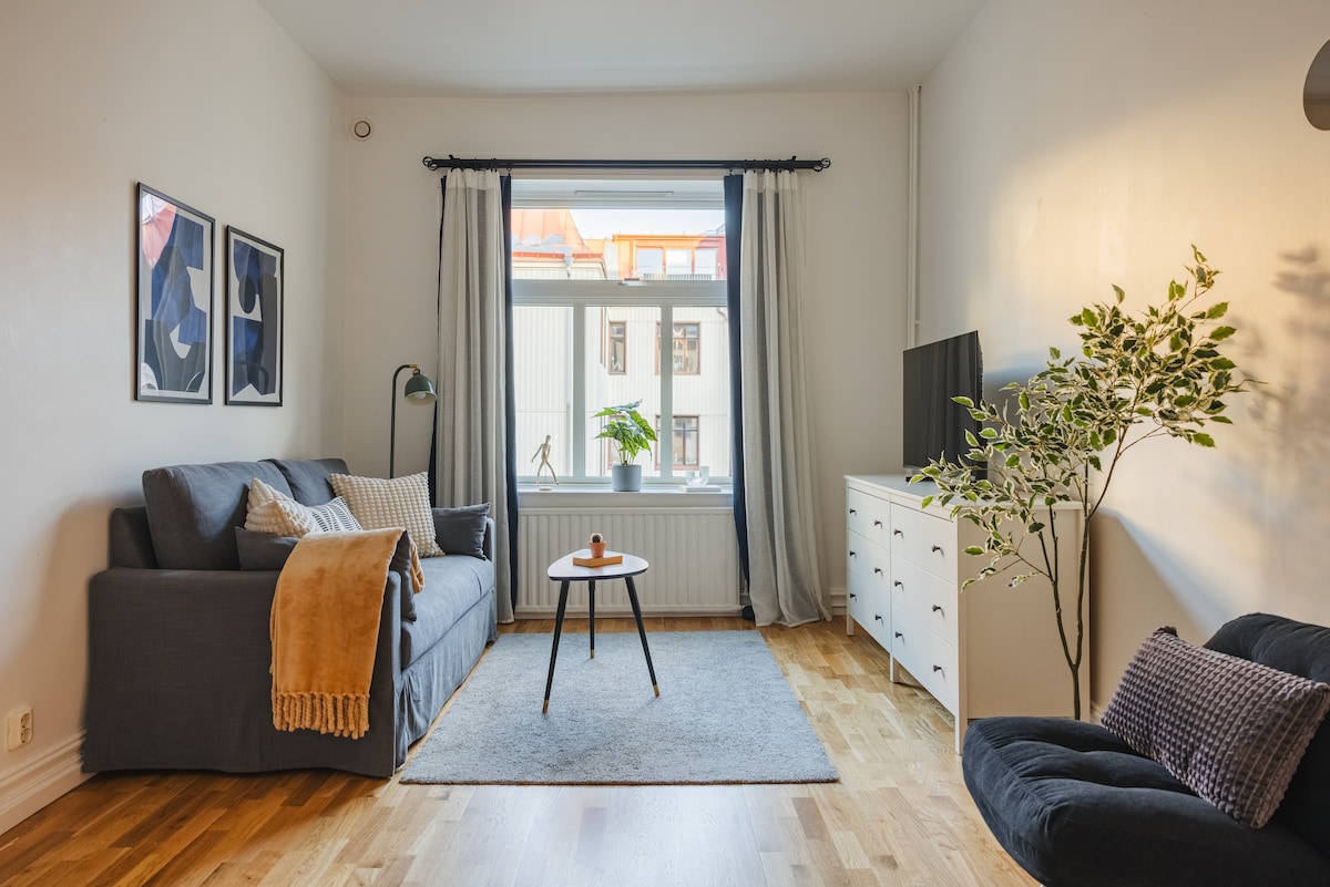 Üdvözlünk modern, egy szobás és konyhás lakásunkban a bájos Johannebergben! Itt kényelmesen élhetsz stílusos dekorációval és teljesen felszerelt konyhával. Tökéletes helyen, közel a Liseberghez, a Svenska Mässanhoz, a Korsvägenhez és sok minden máshoz. A környéken számos étterem és üzlet található. Otthonos oázis Göteborg szívében – tökéletes kiindulópont a szórakozáshoz és a munkához is!