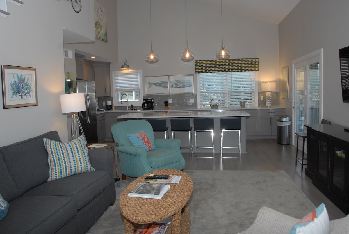 Relax and enjoy our cozy upstairs Beach Cottage amidst majestic live oaks. - 100 steps to the beach (Public access at the property) - Modern "Beach" renovation (ALL NEW APPLIANCES/AC/HEAT) - NEW Tankless H2O heater = endless HOT water for the entire Family - Dog friendly (No Breed, Size, or # Restrictions) Pet Fee = $95 - Outdoor kitchen and BBQ Grill - FREE Parking - Seamless check-in with private keycode - 75-inch Flatscreen smart TV - Cottage on a large double-lot - NO refunds due to weather