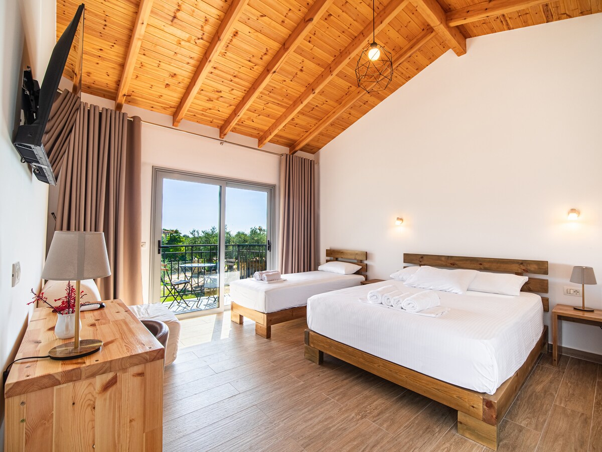 This accommodation has its own style. It is an exclusive penthouse with a fantastic view of the Ionian Sea and the north of the island of Corfu. The penthouse apartment is equipped with two bedrooms with starry skies, 2 bathrooms each with a shower, a washer-dryer, an exclusive kitchen with Miele built-in appliances. The apartment also has a great Sonos sound system, many LED color light functions and a large whirlpool with daily sunsets.