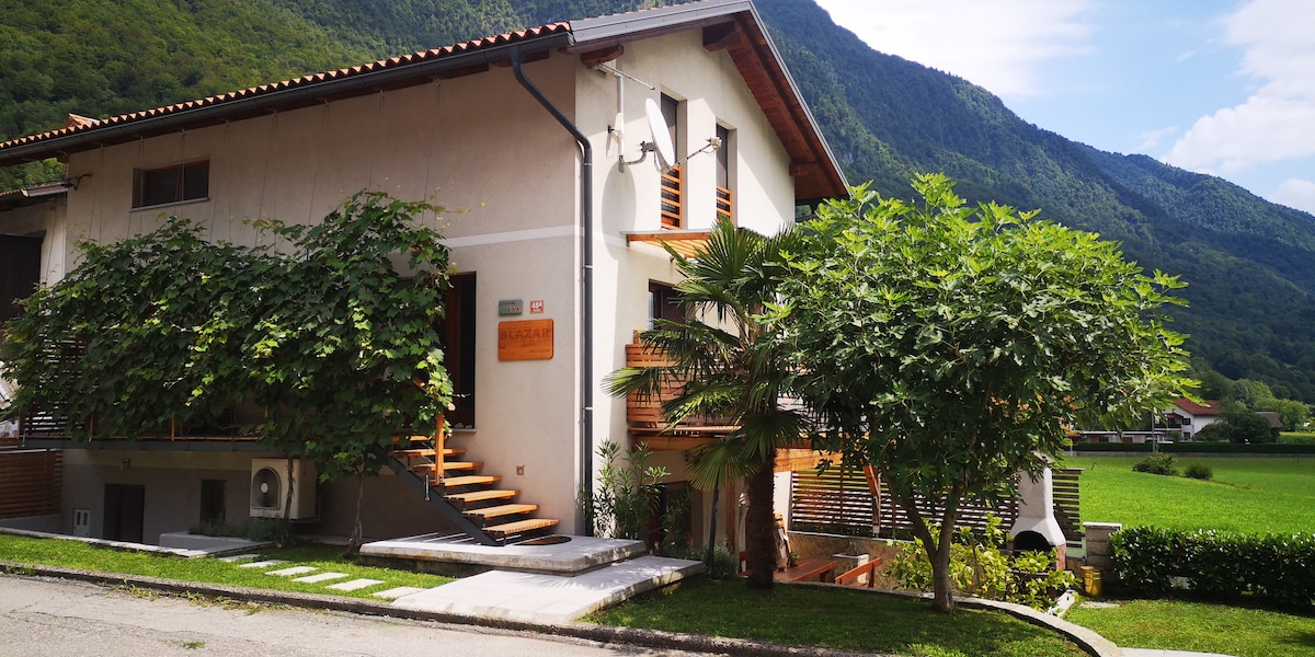 Ház a Soča-völgyben lenyűgöző kilátással a hegyekre