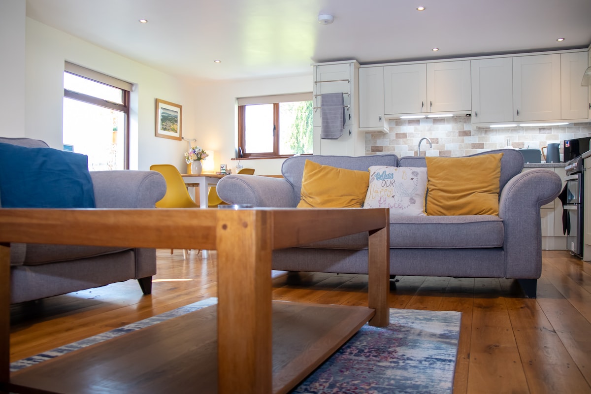 Newly built, high quality, modern, open plan three bedroom accommodation outside Exeter, sleeping 5. Large, modern kitchen with dining and living room overlooking the stunning Devon countryside, River Exe and sea beyond. There are 2 bathrooms, one with a large, double shower. On a beautiful day sit and relax with a glass or two on the covered balcony and watch the stunning wildlife (deer, pheasants, buzzards, hawks, woodpeckers...) Close to Exeter, Dartmoor and local beaches. Private garden.