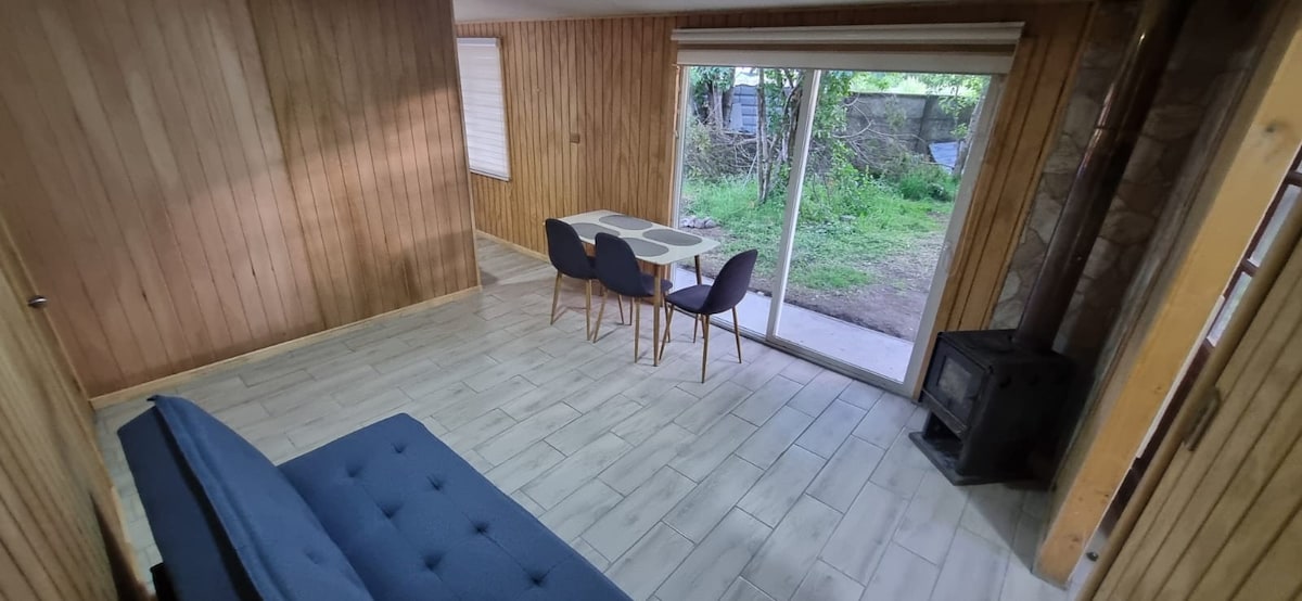 Pihenj az egész családdal ebben a csendes erdei menedékhelyen. Élvezd a természetet minden szükséges felszereltséggel: 🌿 Hot tinaja with hydromassage (additional value of $ 35,000, unlimited use – paid after booking). 📶 Wi-Fi. 🔥 Grill ❄️ Légkondicionálás 🚗 Privát parkolás Mindezt egy gyönyörű őshonos erdőben rejtőzve, ahol a magánélet és a kikapcsolódás biztosított.