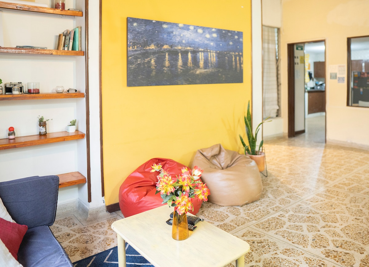 Ha azért utazol Medellínbe, hogy felfedezd a várost, digitális nomád vagy utazó vagy, illetve ha munka-, sport- vagy kulturális eseményed van, a Casa Tangara az ideális hely. Ez a hely egy privát és kényelmes, saját fürdőszobával rendelkező szoba kényelmével rendelkezik, egy coworking kávé a ház mellett, internet, az Estadio metró közelsége és Laureles központi elhelyezkedése. Minden a rendelkezésedre áll az otthonunkban. Reggeli a kávénkban 10 ezer felár ellenében