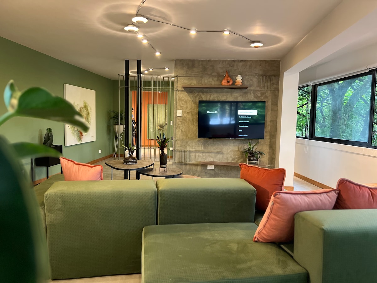 🌴🦜Themed Apartment (Tropical) in the Paz building, boutique hotel style in El Poblado🦜🌴 •Ideal apartment for medium-sized groups, all bedrooms have air conditioning, TV, and a lockable drawer. •Security personnel and security cameras monitored 24 hours a day. •Kitchen with microwave, stove, coffee maker, refrigerator, and blender. •Private underground parking. •Extras available, including chef, tours, transportation. •Prime location near Provenza.