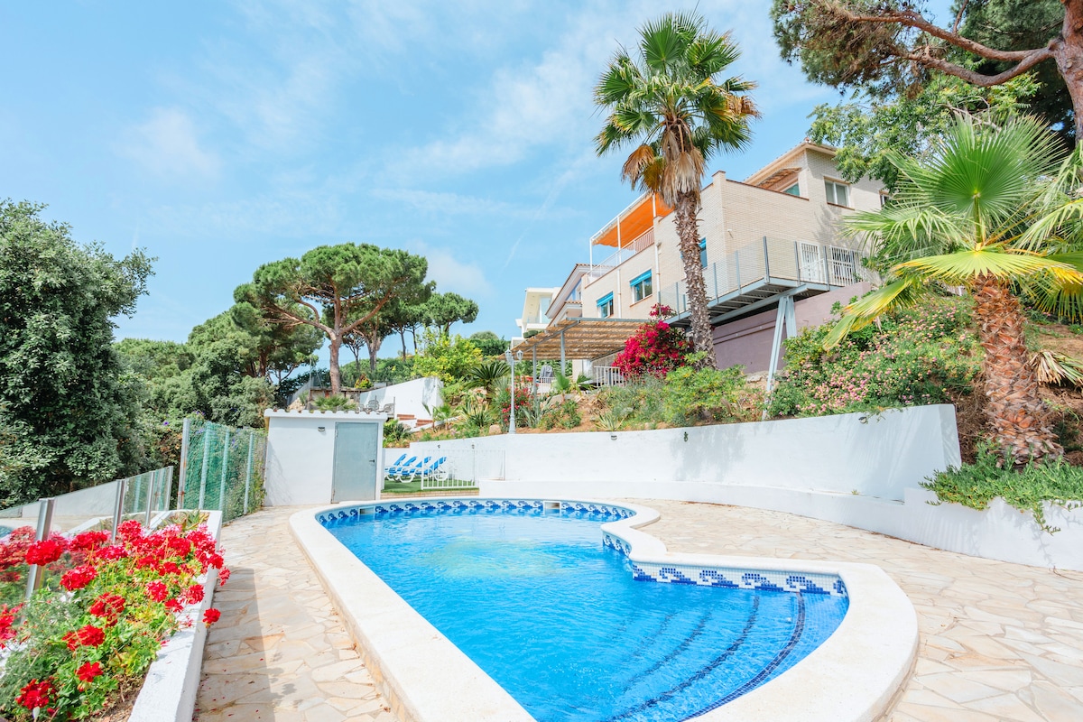 Privát szállás a Santa Cristina-öbölben. Ez a klasszikus villa lenyűgöző kilátást nyújt az óceánra, miközben a saját kertben medencével és grillezővel is pihenhet. Békés menedék, ideális családoknak vagy csoportoknak (profil +28 év). 475 m-re a Treumal és Santa Cristina öblöktől. Légkondicionáló, fűtés és Wi-Fi. Kiváló elhelyezkedés Girona és Barcelona felfedezéséhez maximális kényelemben. Élvezd a Costa Brava autentikus esszenciáját egy idilli és csendes környezetben.