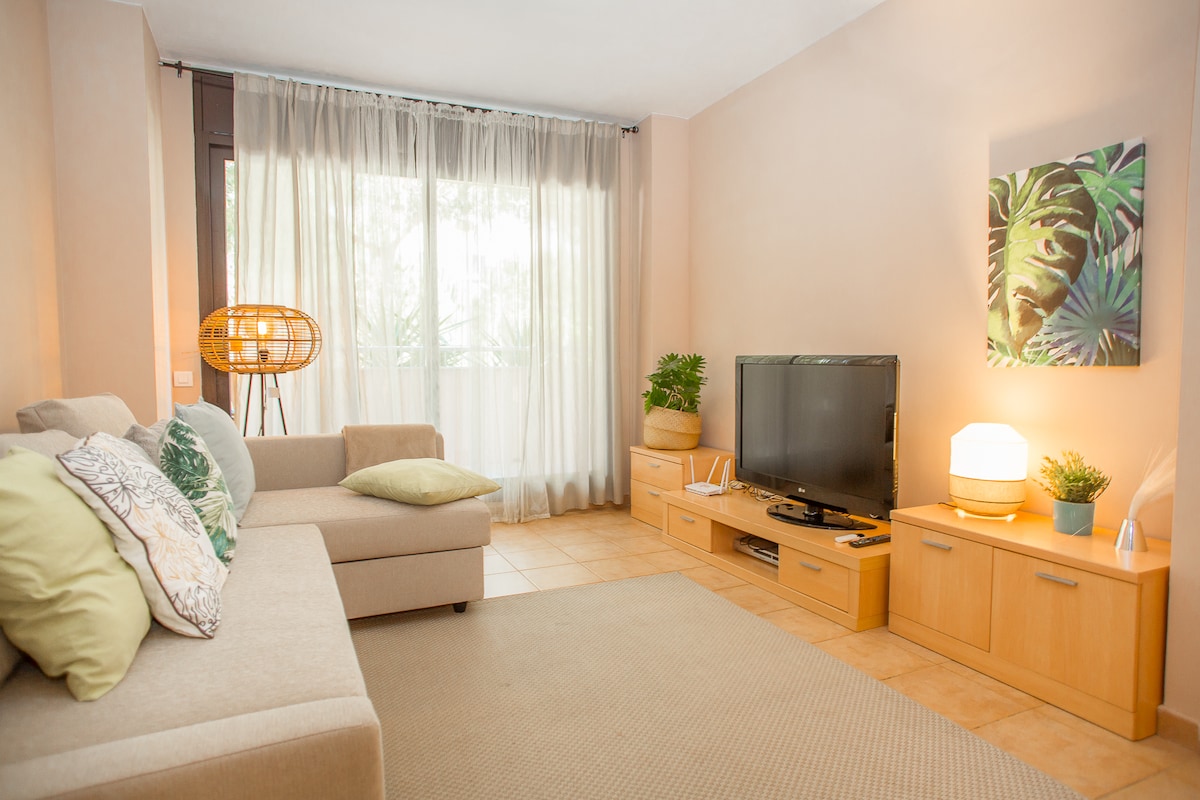 Lakóövezetben található lakás, mindössze 300 méterre a strandtól és 10 perc sétára a városközponttól. Közel éttermekhez, szupermarketekhez és a központi buszpályaudvarhoz. Világos és külső, kilátással a közösségi területre, ahol 2 medence, kertek és egy játszótér található. Tágas nappali-étkező, 2 hálószoba, teljes fürdőszoba és teljesen felszerelt konyha (kerámia főzőlap, mikrohullámú sütő, hűtőszekrény és mosógép). Wi-Fi, okostévé, légkondicionálás/fűtés, lift és opcionális privát parkoló