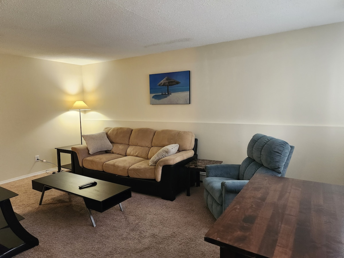 Üdvözöljük privát szálláshelyünkön, amely tökéletes leszállóhely, akár munkába, akár szórakozásba jársz! Lloydminster szívében lenni azt jelenti, hogy csak néhány perc autóútra vagy mindentől, amit a határvárosunk kínál. Ez az önálló egység használatra kész konyhával, hangulatos nappalival, kanapéval és tévével, hálószobával, queen méretű ággyal és hátsó udvarral rendelkezik. Az otthon saját mosógéppel és szárítógéppel is rendelkezik. A háziállatokat eseti alapon fogadjuk - küldj nekünk üzenetet!