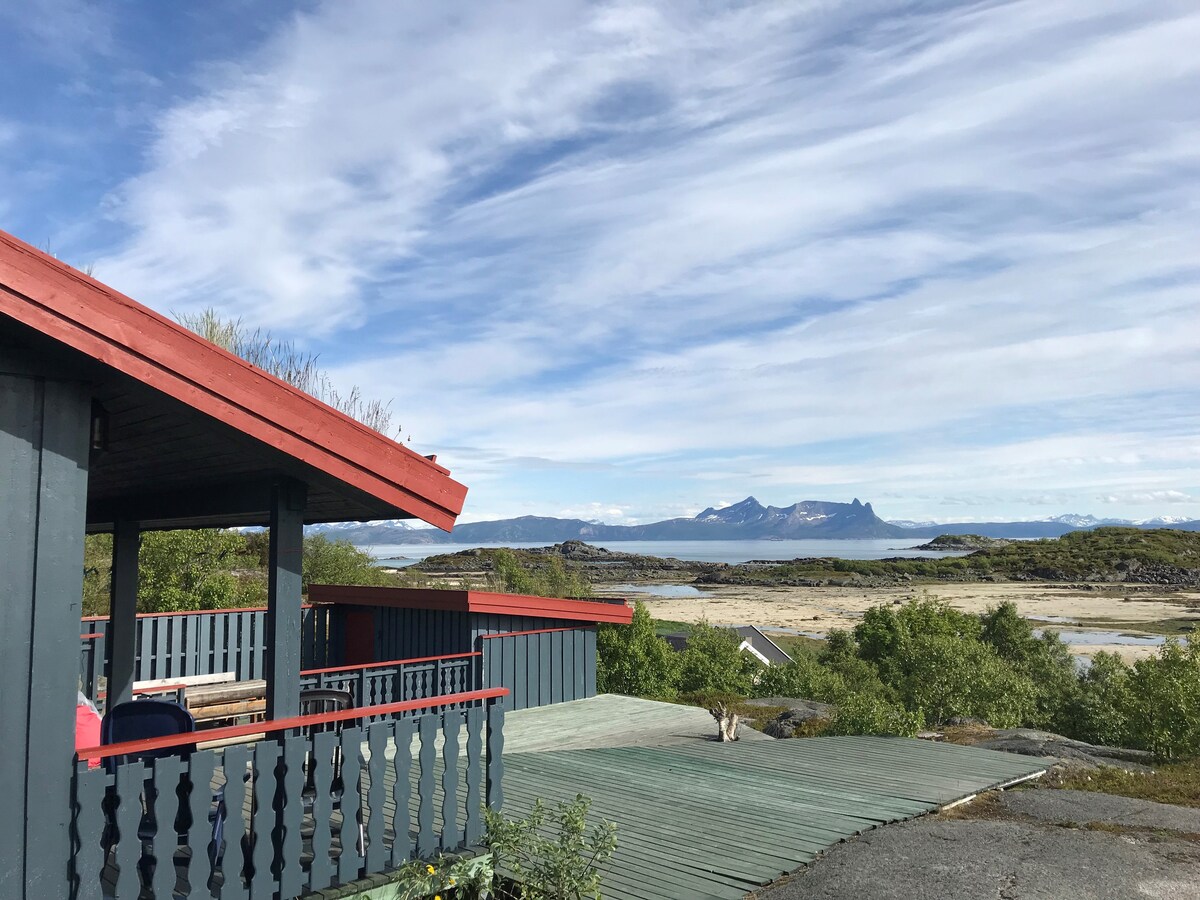 Modern cabin from 2014 with amazing view. Midnight sun on the porch in the mid-summer season, May 23th to July 23th. If You are looking for peace and nature experiences, this is the cabin for you. There are a rich animal and bird life in the area. The area offers a numbers of outdoor activities such as fishing, mountaineering, kayaking, trekking and bathing.