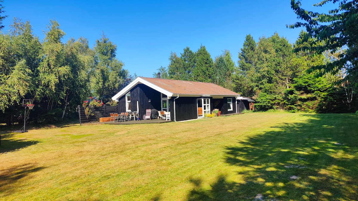 Wellkept summer cottage located by a small forest in quiet area. 150 méterre egy gyerekbarát és gyönyörű strandtól. A közeli Sæby városközpontját gyalog is elérheted a part mentén – vagy egy rövid autóútra. Tágas zöld kert 2 zavartalan terasszal és étkezővel, grillezővel és kandallóval. Háziállatok nem engedélyezettek. Megjegyzés: A bérleti díj tartalmazza a fűtést, az áramot, a vizet, a wifit, a kábeltévét, a törölközőket, az ágyneműt és a bázistermékeket. 650 DKK összegű kilépési takarítási díj