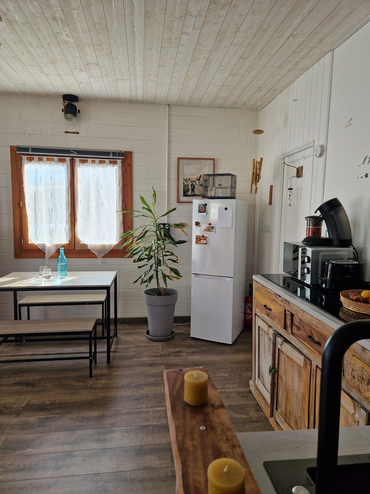 Bienvenue dans notre cabane sur pilotis, un véritable havre de paix niché au cœur de la nature, ici on ralentit on respire on se retrouve……. Dans une atmosphère chaleureuse a l esprit bohème qui imprègne chaque recoin avec ses matériaux naturels c est l endroit parfait pour se déconnecter du quotidien et profiter d un moment à deux. La terrasse vous invite a profiter de la vue majestueuse sur la forêt que ce soit pour un petit déjeuner ou une soirée dans le jacuzzi