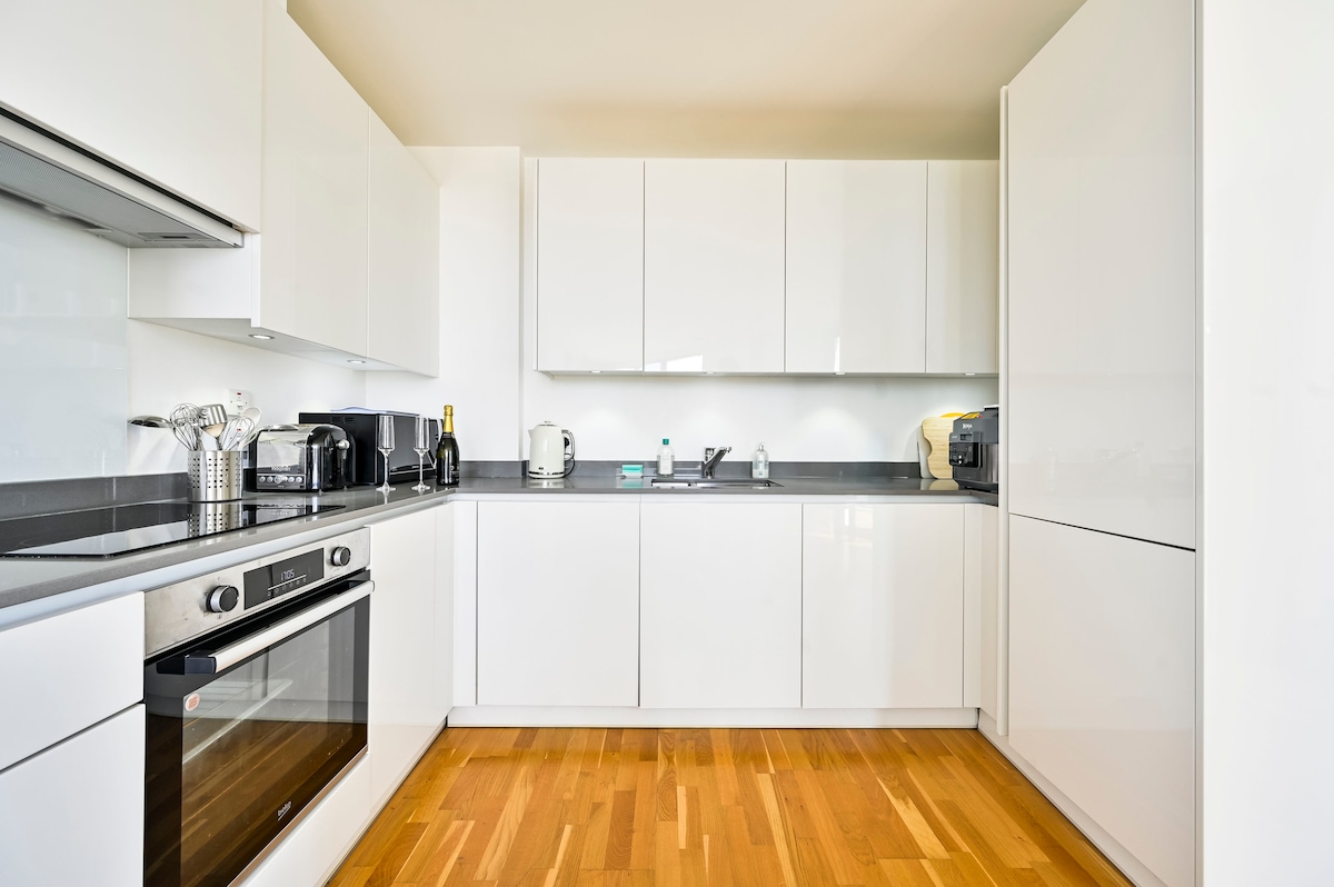 Üdvözöljük vadonatúj, stílusos, 2 hálószobás lakásában a divatos Fish Islanden, amely tökéletes legfeljebb 4 vendég számára! Élvezd a teljesen felszerelt konyhát, a Wi-Fi-t, az okostévét és a privát erkélyt. Egy csendes utcában, 5 percre a Victoria Parktól, 10 percre az ABBA Arénától vagy a Hackney Wick pubjaitól, és 20 percre a Westfield Stratford City-től, az Olimpiai Parktól. Fedezz fel bájos csatornahajókat csak néhány lépésre. Egyedi zöld épületünk kényelmes, központi bázist kínál Kelet-London felfedezéséhez.