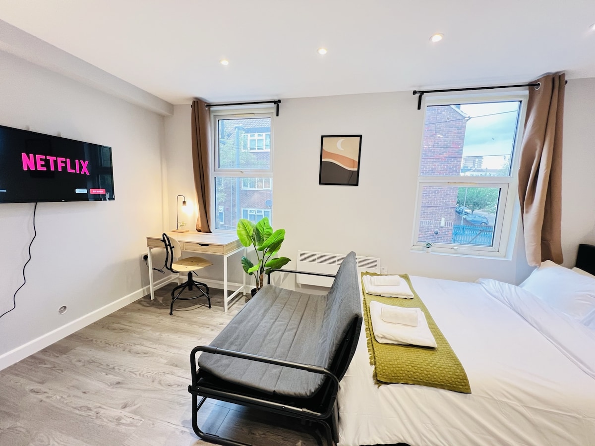 ★★★ FEDEZZE FEL A KORLÁTLAN ÖRÖMÖT ÉS KÉNYELMET EBBEN A MODERN, CSILLOGÓAN TISZTA, ÖNÁLLÓ STÚDIÓLAKÁSBAN ★★★ Ez a békés hely mindennel fel van szerelve, amire szükséged lehet. Csendes szálláshelyed a londoni 3-as zónában vár rád, távol a zajos főutcáktól, a magánélet és az otthonos hangulat egyensúlyával. ✔ Egyszerű, rugalmas önálló bejutás biztonságos kódzárral ✔ Sötétítőfüggönyök ✔ Ingyenes parkolás ✔ SmartTV: Youtube Premium és Netflix ✔ TELJESEN felszerelt konyha és fürdőszoba ✔ Csendes szállás ✔ Ingyenes Wi-Fi ✔ Tisztasági garancia