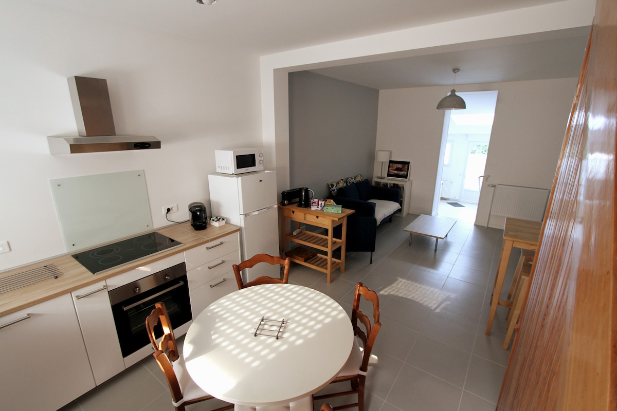 A szállás egy régi munkáslakás (1930), amelyet felújítottak. A teljes hely (100 m2) a tiéd lesz, amely rendelkezik: – bejárat felszerelt konyhával – ...amely egy kanapéval és tévével felszerelt nappaliba nyílik - fürdőszoba (zuhanyzó, mosdó, vécé) - az emeleten egy első hálószoba (franciaágy), egy második hálószoba (franciaágy) és egy fürdőszoba (fürdőkád, mosdó, WC) - 3. hálószoba (franciaágy) a másik kettő egyikén keresztül megközelíthető - egy pince mosógéppel és ruhaszárítóval