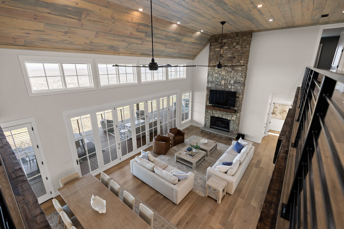 Welcome to the Lookout Mountain Birdhouse! This modern cabin in the woods (completed in 2021) is surrounded by stone, trees, and a breath taking view! This house was built to stretch towards the clouds with a 1000 sqft deck and bird's eye view from inside. The 8 foot windows allow for an unobstructed view. The sunset facing view and valley below offer pure relaxation. Watch out for hang gliders and eagles- they love to fly by! Whatever your reason for visiting, this place has it