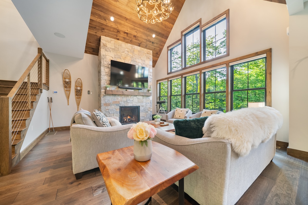 Hegyi menekülés! A White Mountain National Forestben található a Loon Mountain House - az 5 hálószobás (9 ágy), a 3,5 fürdőszobás otthon stílusosan berendezett, csodálatos kilátással a hegyekre. Élvezd a boltíves mennyezetet, a tágas nappalit/alvóhelyeket, a beltéri gázkandallót, a masszív hátsó fedélzetet és az alacsonyabb szintű pihenőszobát pezsgőfürdővel és szaunával. Mindössze 1 mérföldre található Loon bázisházától és Kalandközpontjától. Pihenj bent, vagy szállj ki, és élvezd a szabadban töltött időt! Rengeteg a tennivaló és a látnivaló Lincolnban.