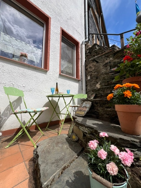 Gyönyörű ház 1. sor a Moselle .35sqm 3 emeleten. 1 hálószoba, 1 hálószoba/nappali, konyha elektromos készülékekkel, fürdőszoba zuhanyzóval, erkély csodálatos kilátással a Moselle és a vár Bischofstein, hálózati aljzatok a hálószobában/nappaliban, WLAN, mosó-szárítógép, kerékpárok tárolható a garázsban, sürgősségi fejadagok a 2. hűtőszekrény garázsban, ingyenes parkolási lehetőség az utcán. Napozó terület a Mosel és a kis Check-in lehetséges bármikor az érkezés napján.
