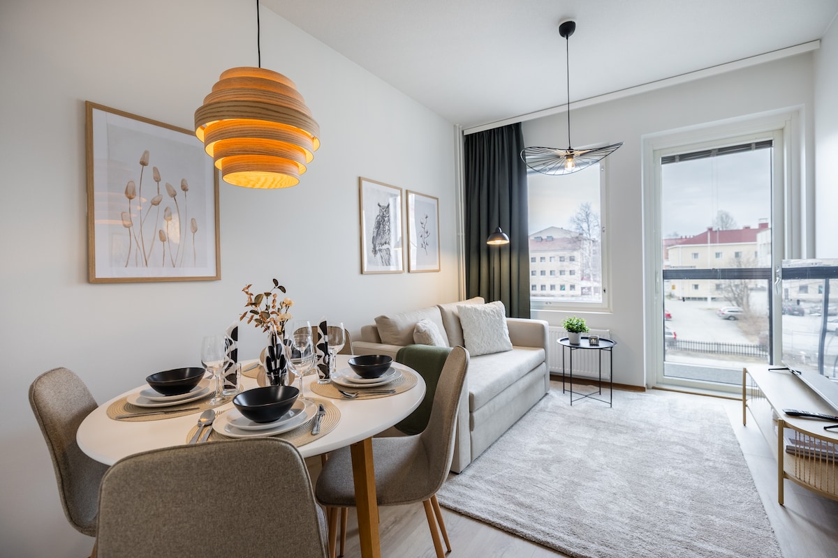 Ez a stílusos és új, egy hálószobás lakás Rovaniemi szívében tökéletes kiindulópont a lappföldi kalandodhoz. Egy újonnan épült épületben található, saját szaunával és erkélyével, csak egy rövid sétányira éttermektől és üzletektől. A hálószobában egy kényelmes franciaágy és sötétítőfüggönyök vannak, a nappaliban pedig egy dupla kanapéágy és sötétítőfüggönyök. A teljesen felszerelt konyhában minden megtalálható, amire szükséged lehet. Élvezd a zökkenőmentes, éjjel-nappali önálló bejutást.