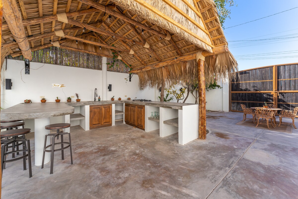 Üdvözlünk a Casa Azulban – egy új, előkelő, két hálószobás, két fürdőszobás szálláshelyen, amely mindössze fél háztömbnyire van a tengerparttól, Loreto egyik különleges lakóutcájában található. A külön hálószobákban található king-size és queen-size ágyakkal, valamint a két, nagyméretű esőztetős zuhanyzóval felszerelt, teljesen felszerelt fürdőszobával ez a hely a kényelemről és a magánélet védelméről szól – tökéletes pároknak, barátoknak vagy kis családoknak. A malecónhoz/sétányhoz 2 perc, a plázához 5 perc sétára van, miközben teljes kényelemben, magánéletben és modern kényelmi szolgáltatásokban lehet részed. Pihenésre és a könnyed életre tervezve.