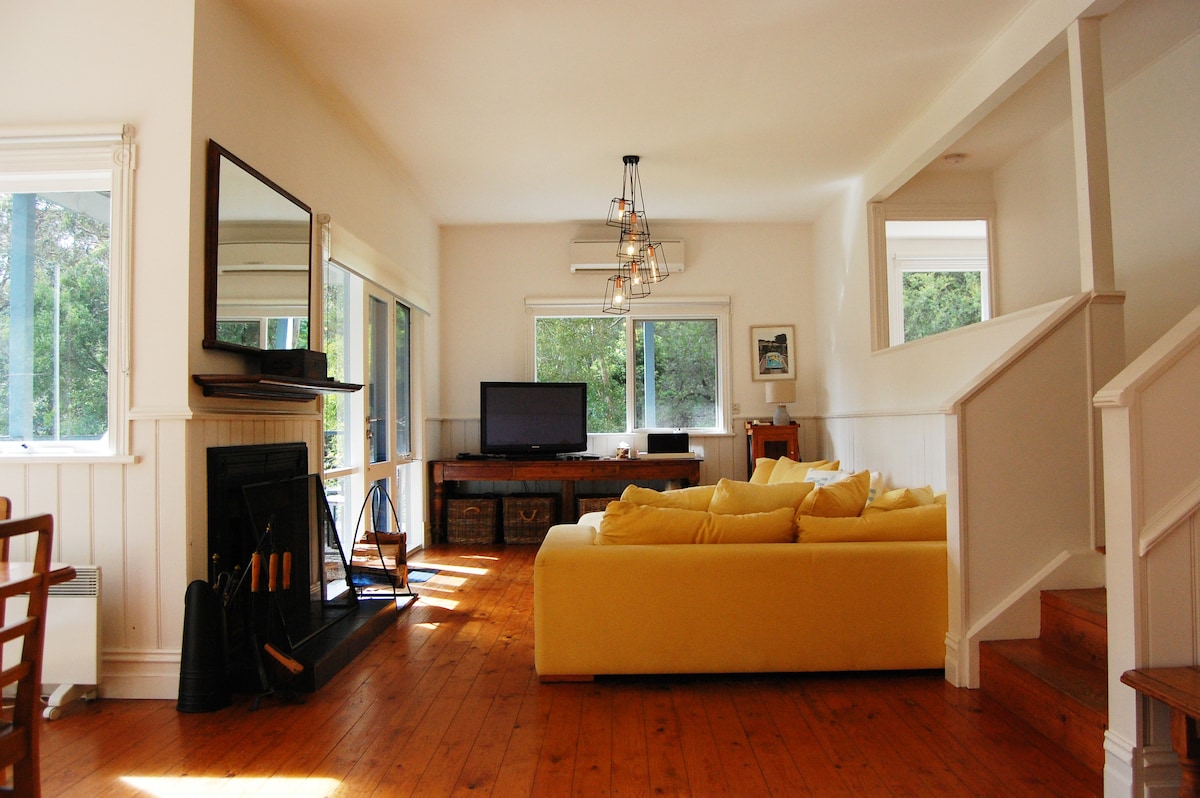 Egyedi és egyedi tengerparti házikó, amely szivárog. Szerepelt a „Home Beautiful Magazine”-ban és a ch 9s „postcards” műsorában. Kifejezetten „párok kiruccanásához” tervezték, minden modern kényelemmel, beleértve a gázos kandallót, a gyógyfürdőt, a nagy LCD-tévét, a DVD-ket, a légkondicionálást, a Wi-Fi-t stb. Csak 300 méterre a folyó torkolatánál lévő strandtól, és közel mindenhez a városban. Nagyszerű kiindulópont a Great Ocean Road felfedezéséhez. TILOS A BULIZÁS. Kérjük, ne adj hozzá további embereket a foglalás elfogadása után GYERMEKEKNEK NEM ALKALMAS (a még nem járó csecsemők rendben vannak)