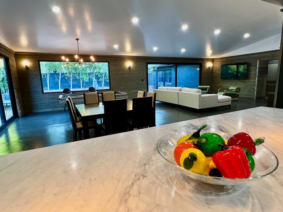 Élvezd a 4000 négyzetlábnyi tágas, modern építészetet, rengeteg kényelmi szolgáltatást nagy csoportoknak *LEGFONTOSABB JELLEMZŐK* + Epikus panoráma Orange megyére + Padlótól a mennyezetig érő üvegfalak + Beltéri/kültéri élet - minden üvegfal teljesen a teraszra nyílik + Teljesen felszerelt konyha + Kiváló minőségű memóriahabos ágyak, gélpárnák és lepedők + Gyors Wi-Fi (100↓, 20↑) + TV-k HBO Max, Netflix, Amazon Prime, Disney+, Hulu *ELHELYEZKEDÉS* + 15 perc Disneylandig + 18 perc Knottsig + 20 perc a strandig + 15 perc az üzletekig