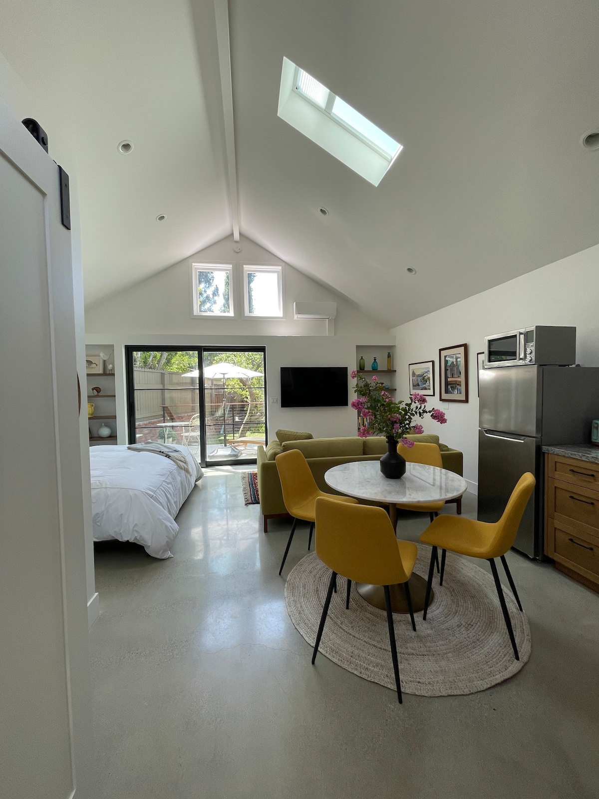 Élvezd ezt a modern, világos, loft stílusú menedéket magas mennyezettel és tágas üvegfalakkal. Készíts ételt a gyönyörű konyhában, csúcsminőségű készülékekkel és konyhai eszközökkel. A 2017-ben elkészült, Bauhaus által ihletett vendégház szerepelt a GQ „A legjobb Airbnb-szálláshelyek Los Angelesben” listáján. A napelemek által működtetett, tágas, nyitott alaprajzot, privát fedélzetet és kulcs nélküli bejáratot kínál. Biztos lehetsz benne, hogy a közelben vagyunk, hogy gondoskodjunk a kényelmedről. Tapasztald meg a modern luxust ebben a napsütötte vendégházban.