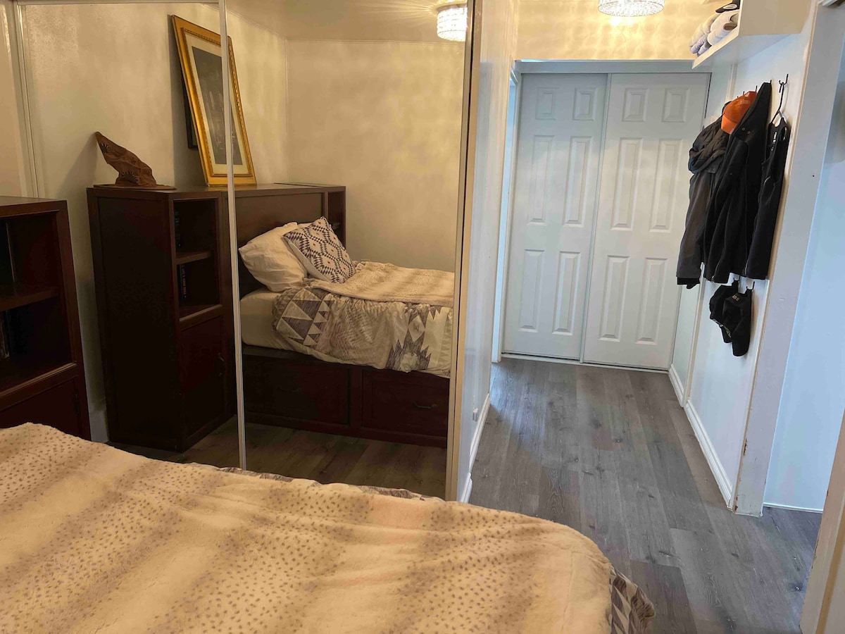 This is an addition to the main house with private entrance at the side. It is fully independent from the main house with kitchen, toilet/shower and washer/dryer. It comes furnished with king bed, wall mounted cable TV, small couch and dresser. Cox high speed wifi is available. There is a door slider that separates the casita from the main house. You can keep this locked. You will also have access to the back yard with pool/jacuzzi, bbq, etc. Great place to just kick back and enjoy.