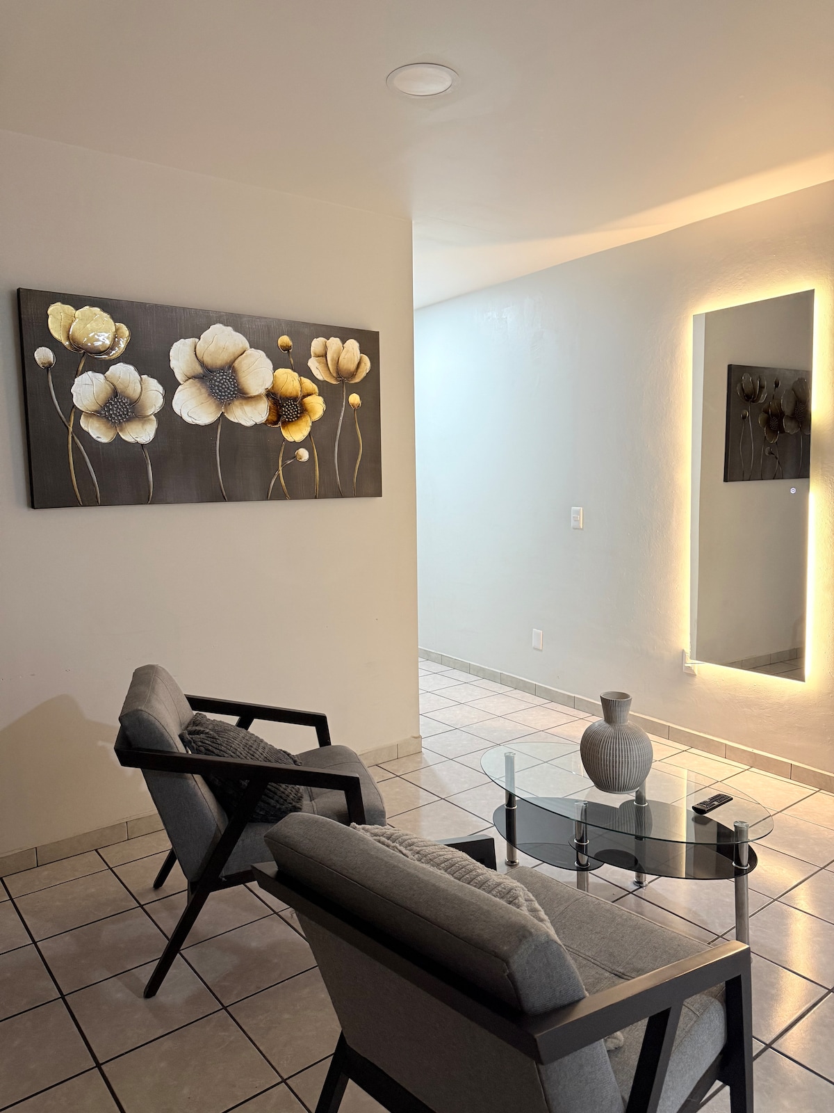 A minutos del centro de Ciudad Guzmán, departamento completamente nuevo en planta baja, ubicado en coto privado con seguridad 24h, dos estacionamientos y alberca común. Incluye WiFi, escritorio para trabajar y TV de 55”. Con acabados de lujo y un ambiente relajado, es ideal para familias, amigos o viajes de trabajo.