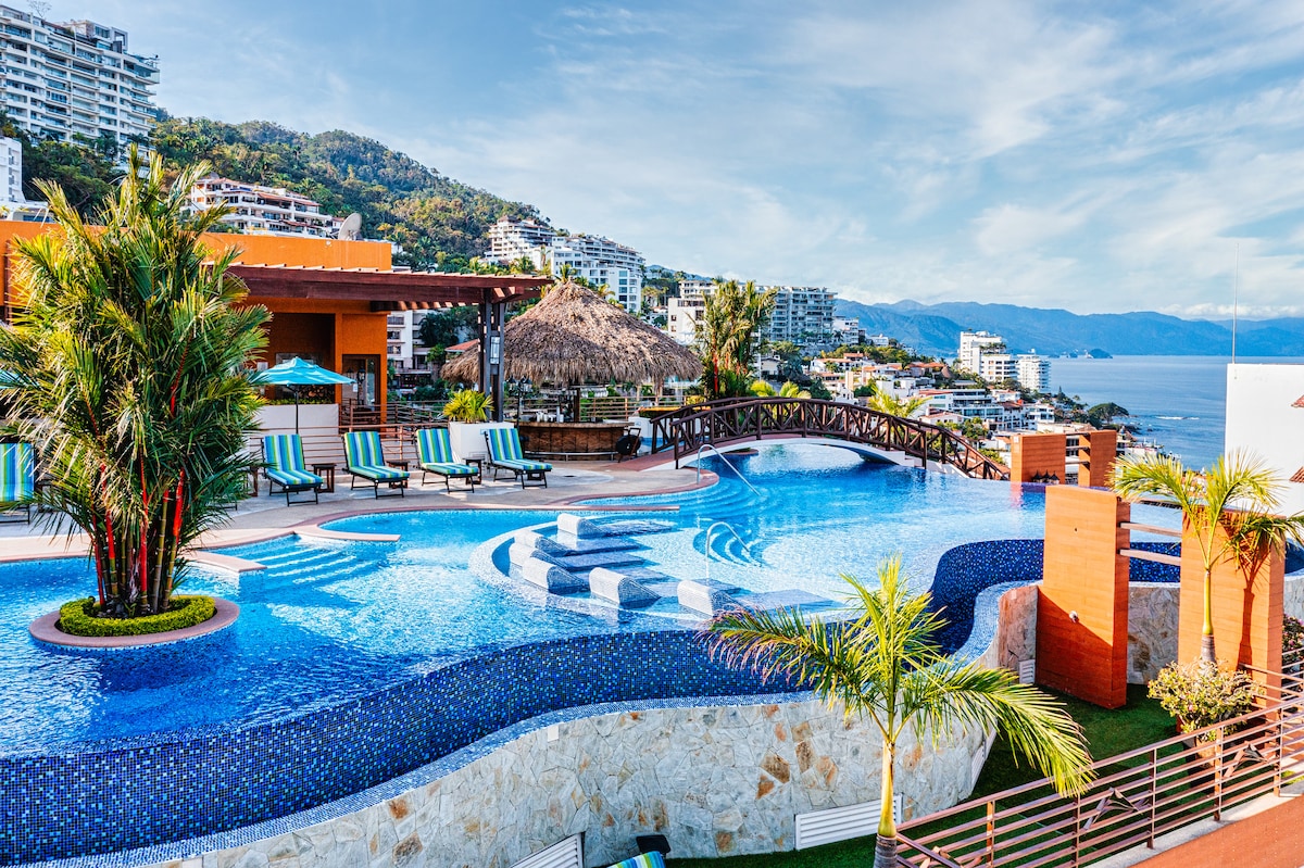 *Medencejavítás a tetőn 2025. május-június Luxusstúdió Puerto Vallarta legjobb helyén, csak pár lépésre a Los Muertos strandtól és a legjobb bároktól és éttermektől, amelyek a Romantikus zóna szívében találhatók. Ez a lakás az egyik legjobb lakás ezen a területen. A helyem tökéletes pároknak, egyéni kalandoroknak vagy akár üzleti utazóknak is. Élvezni fogod a kilátást a tetőről, miközben a napfelkeltét és a naplementét nézed. Ez az egység a 3. emeleten található, a hegyre néző saját erkéllyel.
