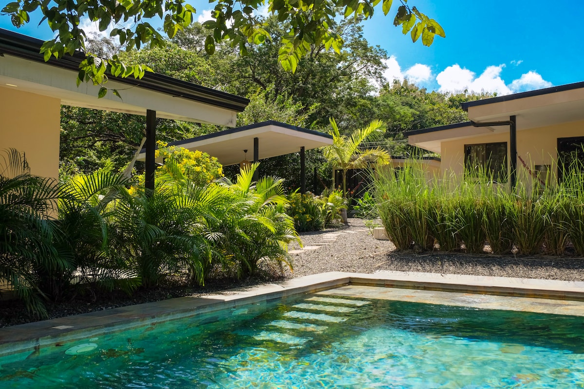 Nestled in the heart of the Costa Rican jungle, Banguni Villas is a peaceful retreat for couples or travelers seeking a slow escape. Surrounded by trees and wildlife, the villa offers a comfortable space with a spacious bedroom, modern amenities, and a strong connection to nature. The property includes only this villa and our home, set on the same land but well separated. Enjoy quiet mornings, relax by the shared saltwater pool, and visit nearby beaches like Playa Avellanas and Playa Negra.