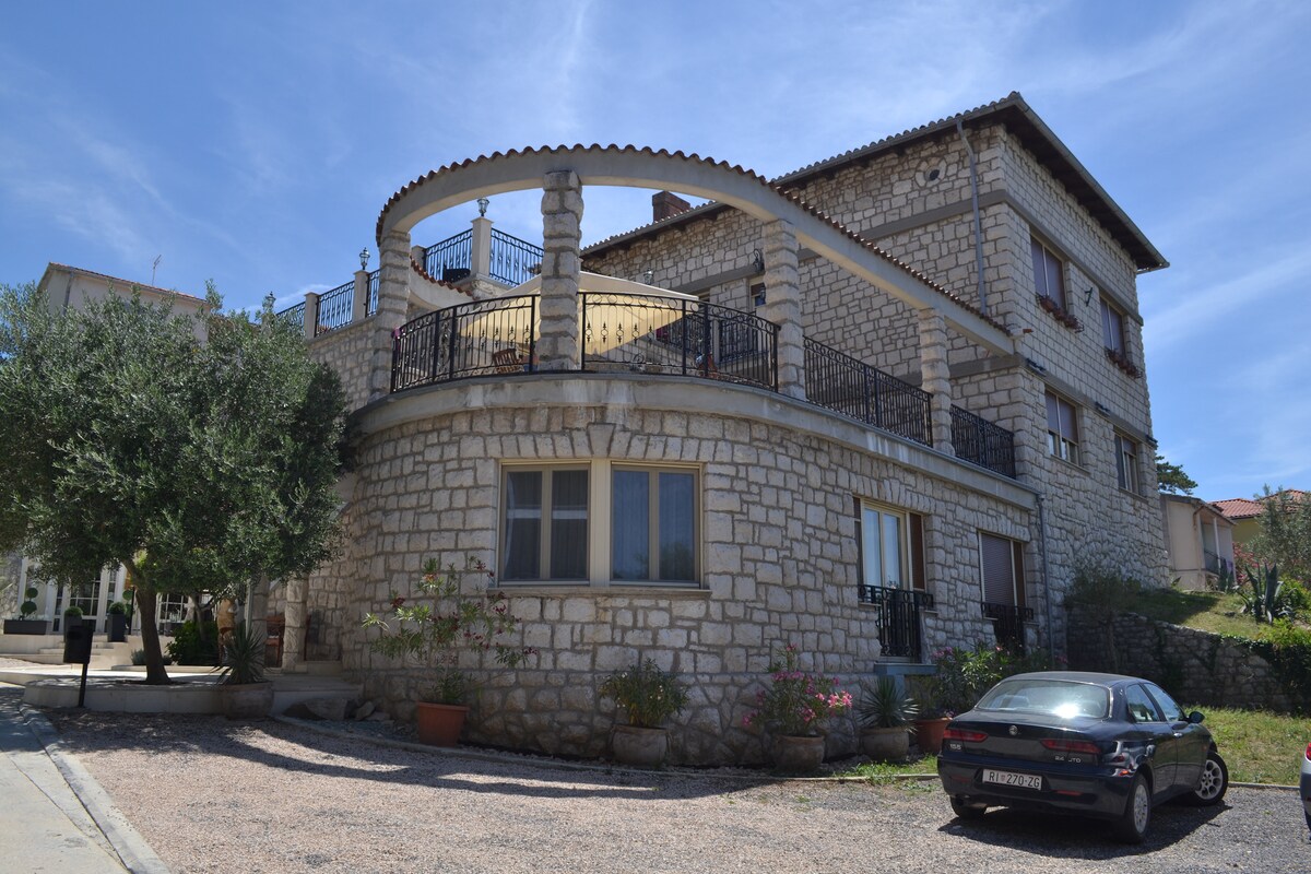 Ha keres egy hangulatos apartman két szobával, konyha, fürdőszoba és szép terasz ez a hely az Ön számára. Az apartman 10 percre a tengertől és Rab városától. Mehetsz biciklivel vagy sétálhatsz a tengerpartra. Talán a lakásunk nem a legfényűzőbb, vagy a legnagyobb, de van benne valami különleges báj és lélek. Van benne valami, ami évről évre idehozza az embereket. Gyönyörű a természete, tengerre néző, állatbarát és közel van a tengerparthoz és a városhoz.