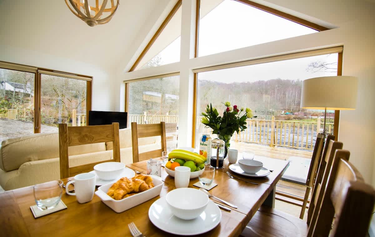 Lovely river fronted lodge with hot tub