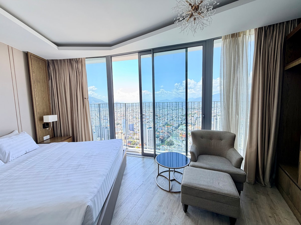A lakás egy csúcskategóriás és fényűző belső tér, hosszú kanapéval és étkezőasztallal, a lakás erkéllyel rendelkezik, amely a tengerre néz, és dohányozhat. A lakásban kétajtós hűtőszekrény, 55 hüvelykes okostévé és mosógép található. A lakás alatt 12 emeletnyi kereskedelmi központ étterme és kávézója található, a 3. és 4. emeleten Lotte szupermarketek, svédasztal az 5. emeleten, gyermekjáték a 7. emeleten, védőoltások VNVC 10th floor. Van egy végtelenített medence a 12. emeleten, és körülbelül 350 000/vé költséggel használható 1 törülközőért, 1 pohár vízért 4 órán keresztül