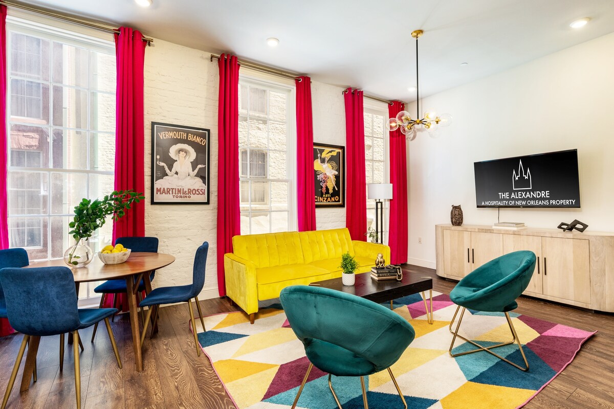 Soak up Victorian historic charm w all of the modern updates in this spacious HGTV renovation as seen on TV show New Orleans Reno. The Bywater Beauty on Louisa Street boasts a relaxing large front porch, free street parking day & night, chic interior w 12.5” ceilings, living room pocket doors for additional room privacy, SMART TV, eat-in kitchen w oversized marble island, 1 luxury QUEEN Simmons mattress sold by the Four Seasons Hotel w Hotel Collection & Ralph Lauren bedding, 1 QUEEN & 1 TWIN air mattresses, stylish en-suite bathroom w shower & toiletries, central AC/heat w a ceiling fan in primary bedroom, & an Alarm system. Guests say the rental is even more stunning in person & the host is quick to respond! Licenses #23-NSTR-13400 & #24-OSTR-03209. Bywater is NOLA's most sought after hip & historic neighborhood that offers its own world-class restaurants, bars, riverfront park, along with creative neighbors! It provides a respite from the French Quarter and Frenchmen Street that are both less than 1 mile away.