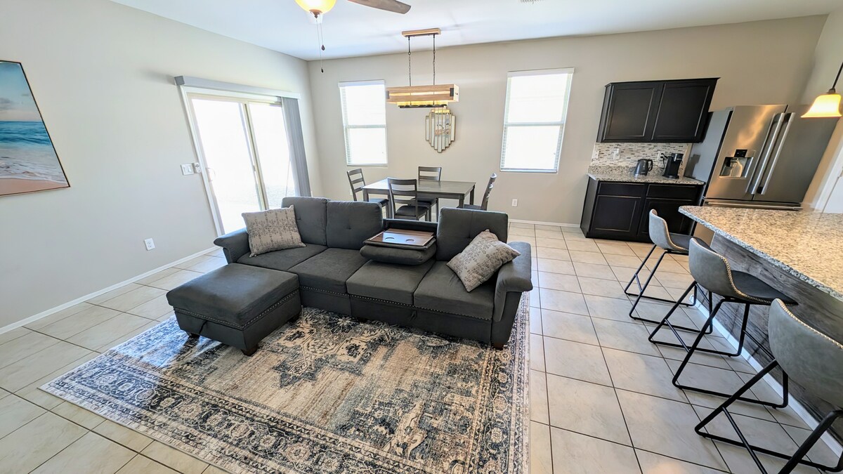 Privát otthon, amely egy csendes sarkon található, ez a 3 hálószobás, 2 fürdőszobás otthon kényelmet, magánszférát és helyet kínál a pihenéshez. Élvezd a teljesen felszerelt konyhát. Ez az otthon ideális családoknak, pároknak vagy üzleti utazóknak, akik nyugodt és kényelmes szállást keresnek. A helyi parkok, bevásárlóközpontok, éttermek közelében leszel, és rövid autóútra az autópályák és a Phoenix környékén található főbb látnivalók. Akár munkára, akár pihenésre jössz, otthon fogod érezni magad!