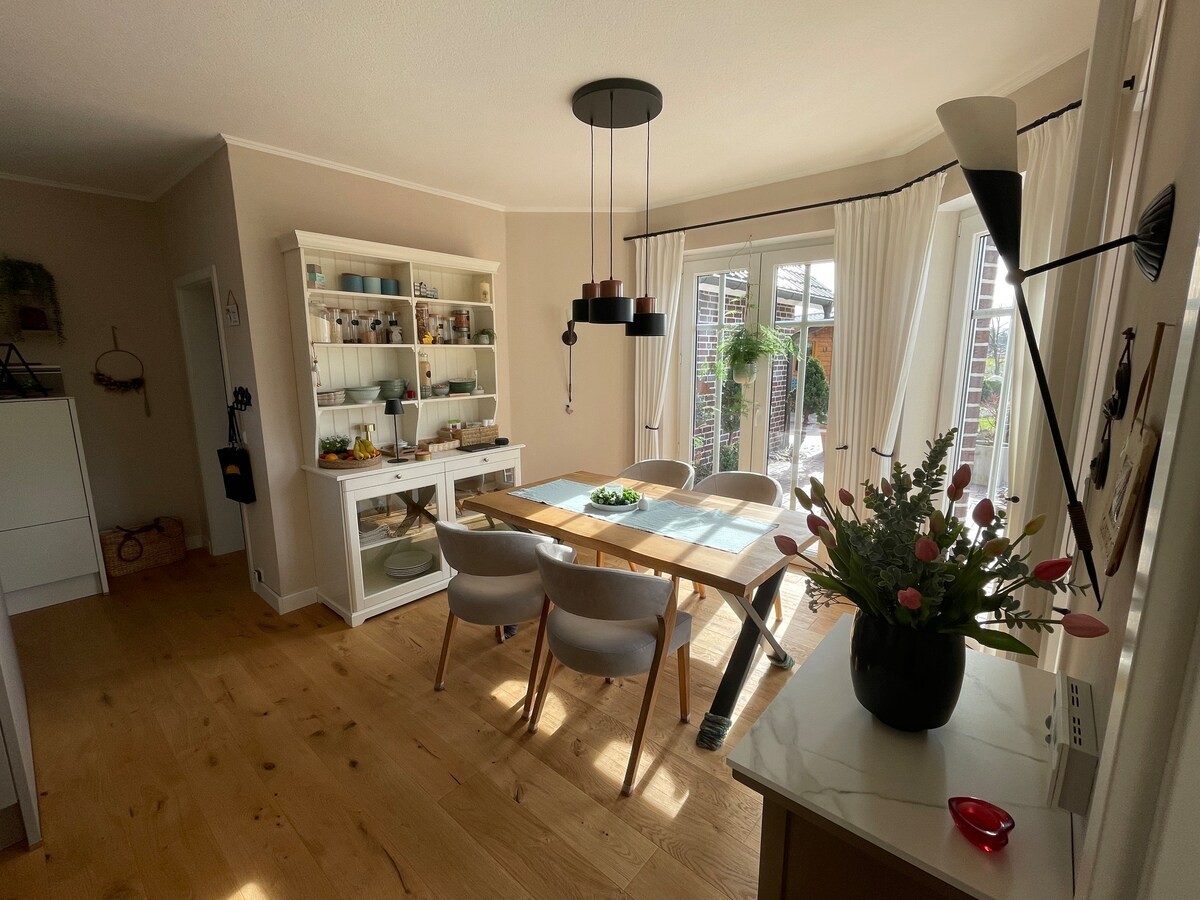 Felajánlok egy szobát a házamban két embernek. A nagy, világos fürdőszoba is használható. Igény szerint ízletes, élénkítő, de egyszerű reggeli is rendelkezésre áll. Papenburg megközelíthető autóval körülbelül 15 perc, de Surwold is sokat kínál. Kiterjedt séták vagy egy látogatás a Meyerwerft többek között ideális. Örömmel segítek.