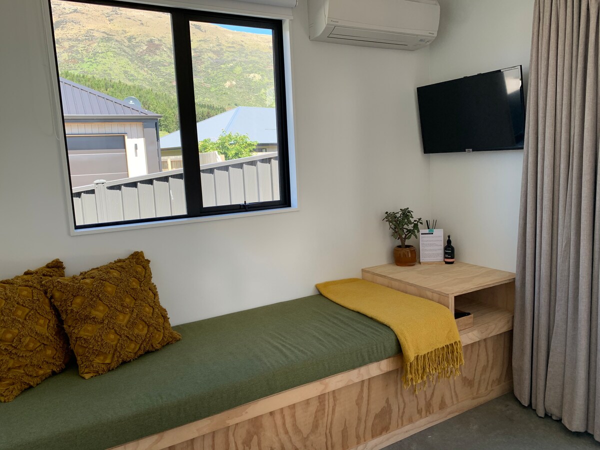 Welcome to your cabin by the lake. Created by a Queenstown architect it’s warm and cosy with underfloor heating for the Winter, north facing and sunny in the courtyard for dining in Summer. It's clad with Canadian Cedar on the outside and lined with Scandinavian Spruce inside giving a lovely natural ambiance. Located in a quiet and peaceful part of sunny Kelvin Heights it's beside the lake and the Queenstown Trail.