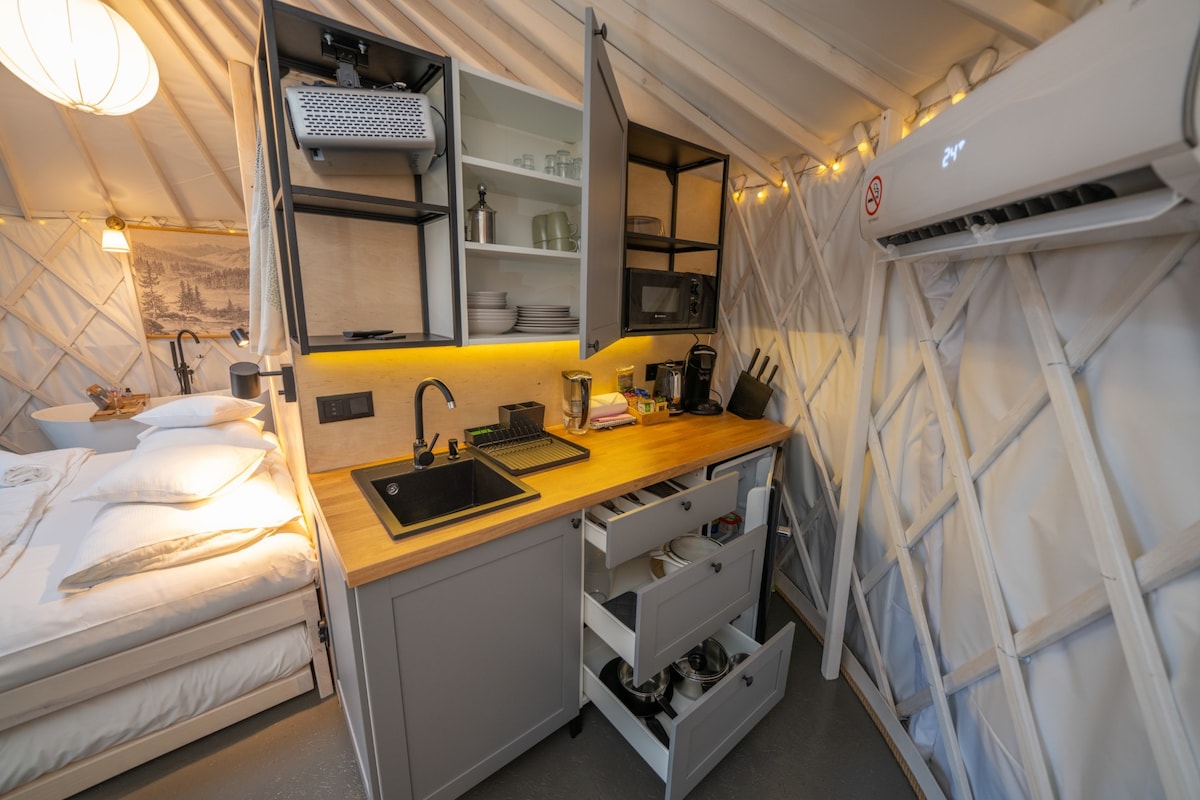 Izera Glamping – Luxus jurták és fürdő (zöld jurta)