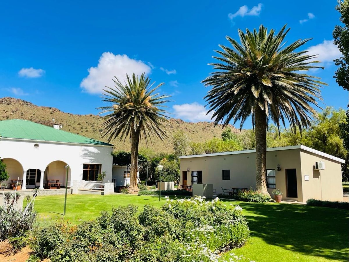 Kapcsolódj újra a természettel ebben a felejthetetlen kiruccanásban, lenyűgöző kilátással és gyönyörű karoo tájakkal. A ház egy békés oázisban található egy működő farmon, festői sétákkal vagy biciklizéssel a buja lucern földeken keresztül; még kudut is láthatsz! Kényelmes, fényűző, tiszta szállást, meleg, barátságos és barátságos szolgáltatást kínálunk. Bár a ház önellátó, a Whistling Bridge Cafe reggel 7-től délután 4-ig tart nyitva, és ízletes reggelit és ebédmenüt kínál.