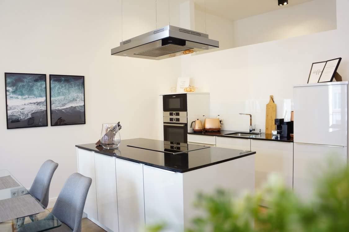 Das im Loftstil gebaute Appartment mit hochwertigen Möbeln und komplett ausgestatteter Küche sowie die beiden Badezimmer (eins davon en suite) sind mit Liebe zum Detail und Blick fürs Schöne eingerichtet. Entspannen Sie in der Infrarotkabine, die in einem der beiden jeweils mit 180x200 Boxspringbetten ausgestatteten Schlafzimmer steht oder in der freistehenden Badewanne. Alternativ kann man auf der großen Terrasse mit Blick auf den Hafen und Leuchtturm die Seele baumeln lassen.
