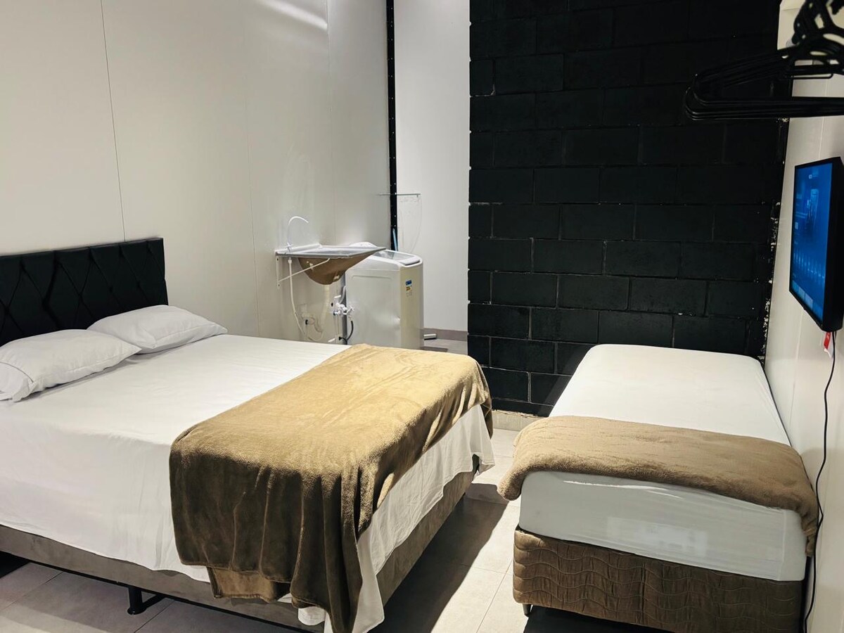Espaço completo, 1 quarto, climatizado, 1 cama casal e 2 camas solteiros(beliche), perfeito para reuniões e também para quem precisa de um alojamento temporário. O ambiente é amplo, arejado e confortável, ideal para grupos, famílias ou equipes que precisam pernoitar. Dispomos de 6 colchões de solteiro, organizados no chão de forma prática e aconchegante. ✅ Ambiente fechado com portas e quarto de apoio ✅ Local limpo e organizado, Ideal para grupos, confraternizações ou hospedagem curta.