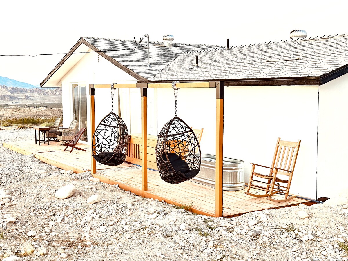 A Mesa tetején elhelyezkedő, 10 hektáros területen épült, újonnan épült otthon nappal a Nemzeti Parkra nyíló kilátást nyújt, éjszaka pedig a hatalmas Tejútvonalat emeli ki. Áztasd be magad a dupla papucsos karmos lábkádba, és nézz ki a Joshua Trees tengerébe, vagy élvezd a sivatagi égboltot a hátsó verandán, miközben csillagok szárnyalnak a fejük felett. Ha menekülést keresel a tömegektől távol, mégis közel a „szórakoztató” Joshua Tree és Yucca Valley kínálatához, ne keress tovább, a Ladera House a közelben van.