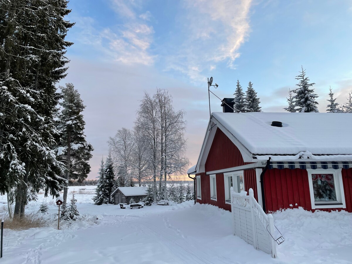 Right by the water, this is arctic nature at your doorstep. 5 mins from Luleå by car, 15 min by bus. Perfect romantic get-away, a quiet retreat/chill-out spot with Luleå's amenities just a bus/bike ride away. Sleep in a comfy bed and have a sauna by the lake! Dishwasher & washing machine, 2 km to supermarket. Trails for running and skiing right by house. Ski/skate/bike/kayak rental. In winter see the northern lights over the frozen lake, the location and view is stunning. Wifi 500/500. Welcome!