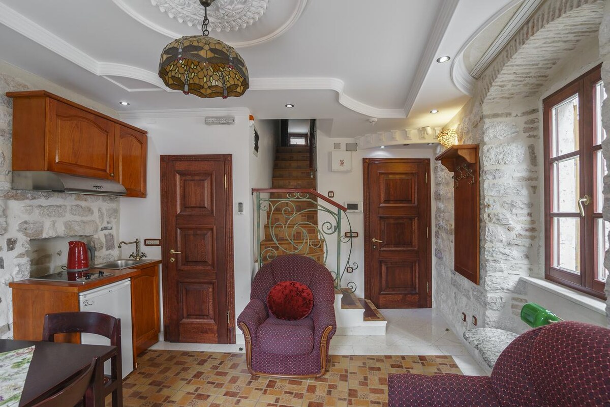 Ismerd meg a Kotor óvárosának szívében található 12. századi stílusos lakás középkori báját. Központi elhelyezkedés a legszűkebb, „Pušti me proć” vagy „Hadd haladjak el” közelében, amely csak 80 centiméter széles. A zsúfolt terektől és forgalmas szuvenírboltoktól rejtező utca nagyszerű turisztikai látványossággá vált. A Szent János-erőd bejárata csak egy percnyire van. Elképesztő kilátás nyílik a Boka-öbölre a csúcsról.