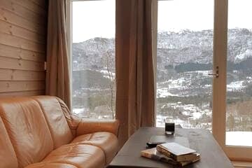 Új építésű víkendház panorámás kilátással a Lustrafjordra és a Feigefossen vízesésre. Csak 100 méterre a fjordtól, egy nyílt füves mezőn keresztül. Világos, modern belső tér nagy ablakokkal. Tökéletes kiindulópont túrázáshoz, kerékpározáshoz és síeléshez. A Nes Gard mellett található – egy elismert falusi szálláshely, ahol étterem, borbár, szauna és pezsgőfürdő is foglalható. Csendes, festői és teljesen felszerelt a kényelmes tartózkodáshoz.